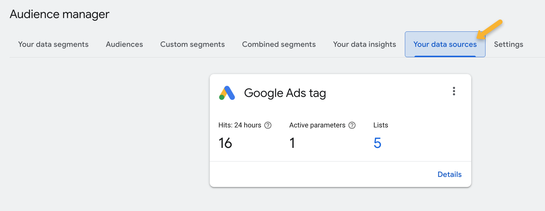 4. If you don’t already have anything added as a Data Source, add the Google Ads Tag as a Data Source.