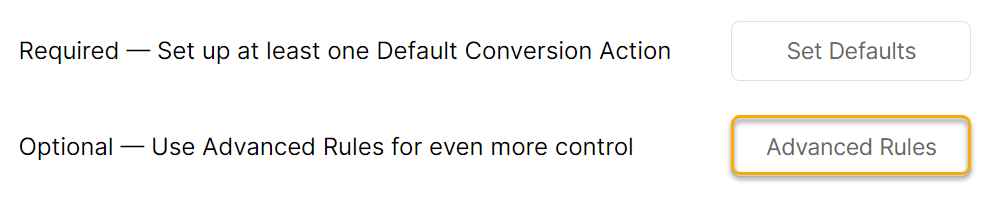 If a conversion doesn’t match the advanced rule you have set, it will use the default rule you initially set up.