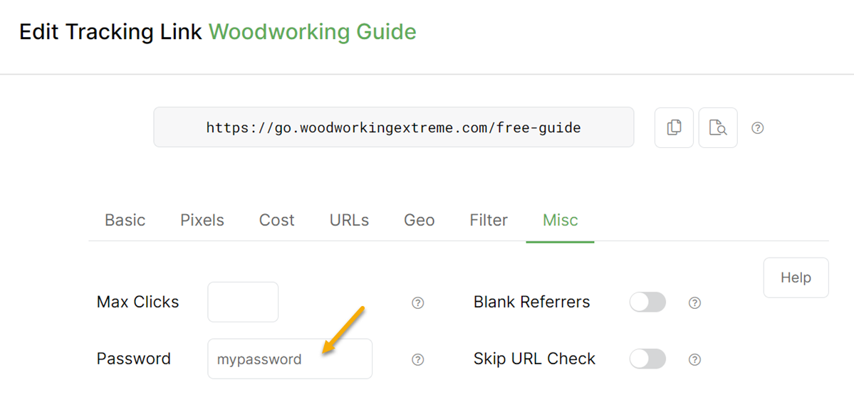 To add a password to a Smart Link, just edit the link, click on the Misc tab, and enter a password.