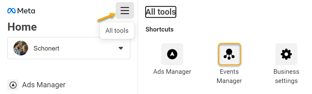 First, go to Events Manager and click any Dataset that lists Meta Pixel under “Integrations.”