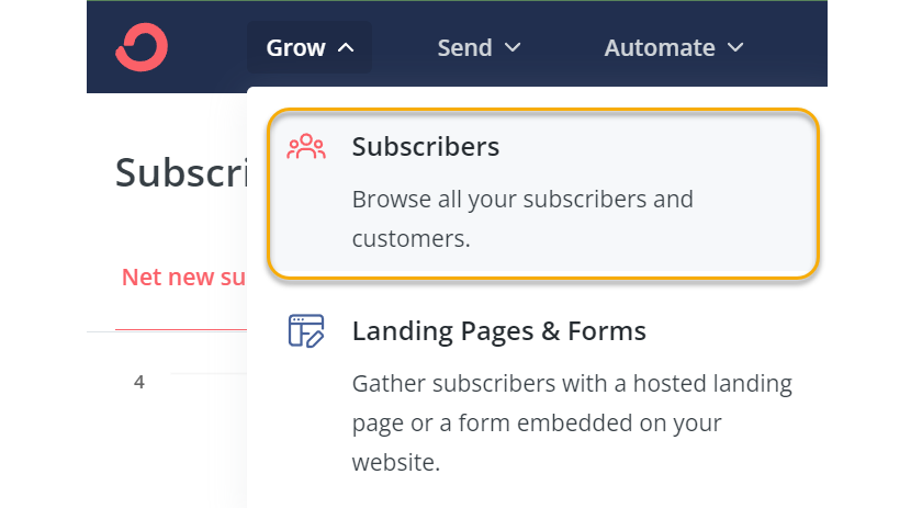 1. In ConvertKit, click on Grow and then “Subscribers” .