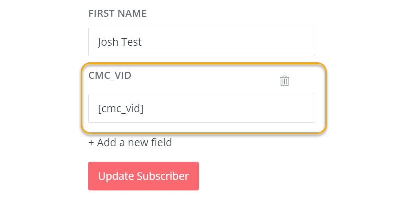 3. Add in cmc_vid for the Field name, and [cmc_vid] for the Field value.