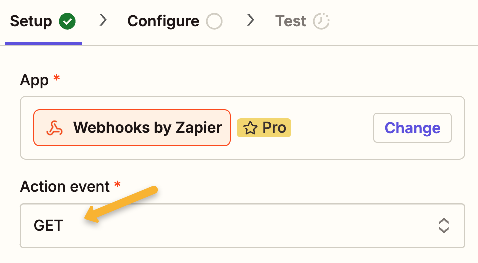 Select “GET” as the “Action event”.
