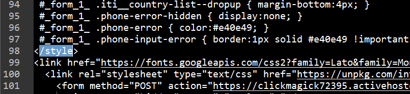 12. First, we will remove the “style”, as it’s at the top. Use the find command (Ctrl+F on Windows, Cmd+F on Mac) and search for “/style”. When you find it, remove everything from there to the TOP of the code, including </style>.