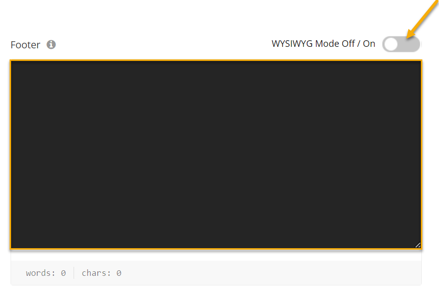 5. Add your Conversion Tracking Code to the “Footer” section, and don’t forget to turn off WYSIWYG mode.