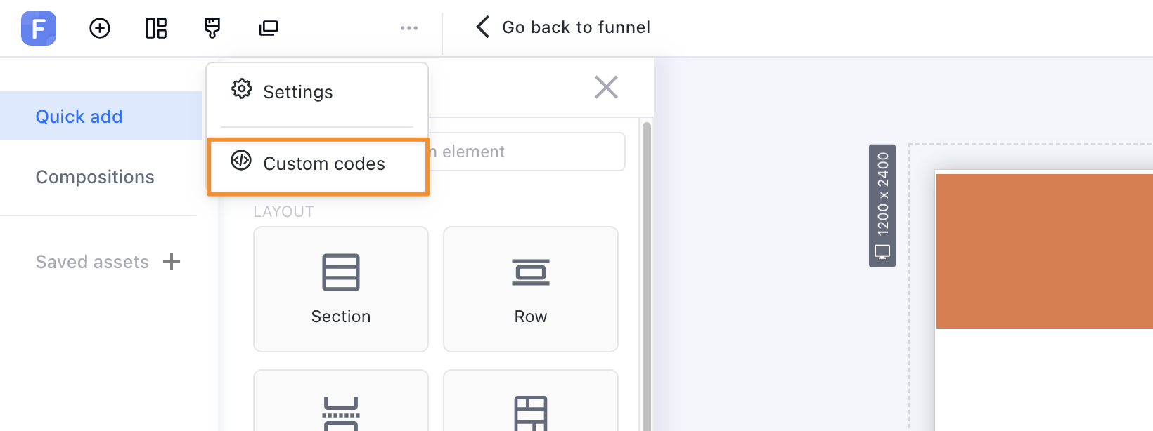 Then, click on the "3 dots" icon at the top-left, and choose "Custom codes"