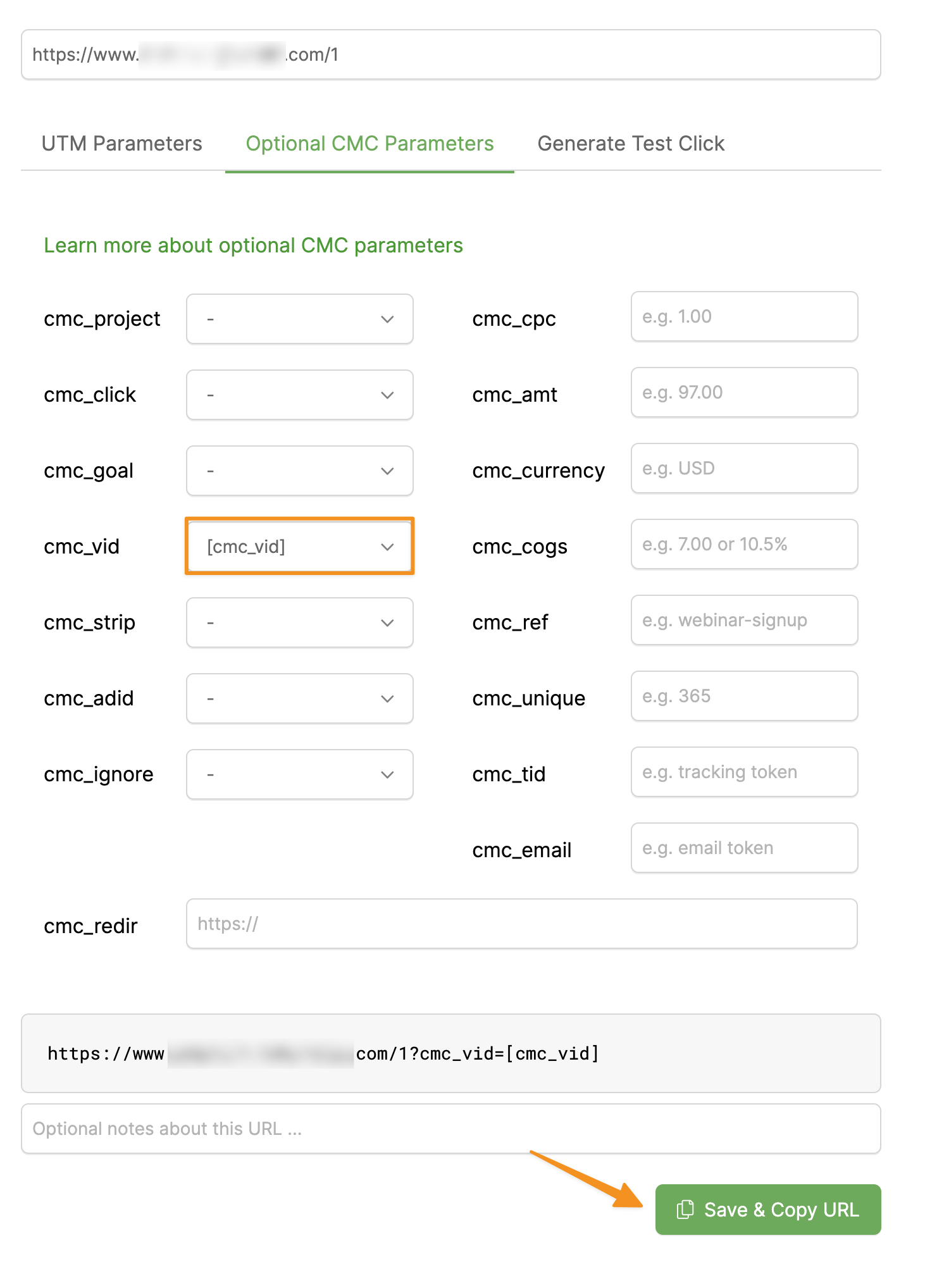 Click on the "Optional CMC Parameters" tab, and select "[cmc_vid]" in the "cmc_vid" dropdown.