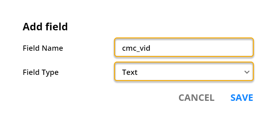 4. Add the value cmc_vid into the box for Field Name, and then leave Field Type as “Text.”