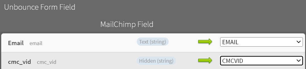 15. Configure the fields to map to the ones in your form. In this case – email should map to email, and cmc_vid should map to “cmc_vid”: