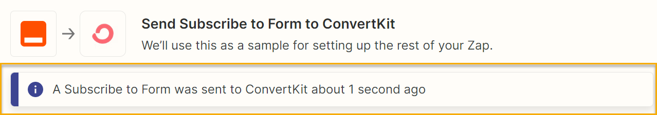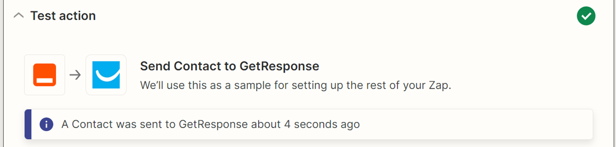 21. Click continue and test the zap. If successful, you will see a message like this: