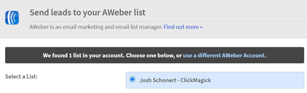 10. Choose Aweber as the integration source.