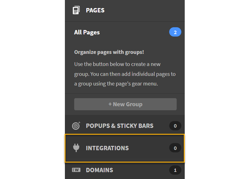 9. Go to your Unbounce dashboard and click on Integrations on the left.