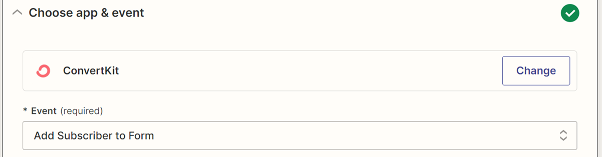 18. Add the event “Add Subscriber to Form” as the event type and click continue.