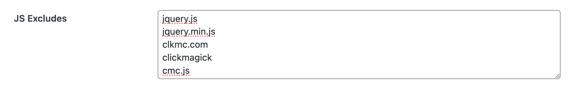 4. Paste the exceptions you copied above into the “JS Excludes” and “JS Deferred / Delayed Excludes” boxes.