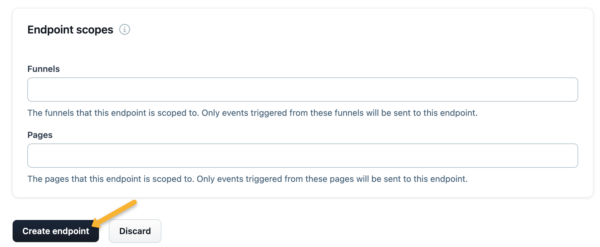 You can leave “Funnels” and “Pages” under “Endpoint scopes” empty. This will process sales for all your funnels and pages automatically.