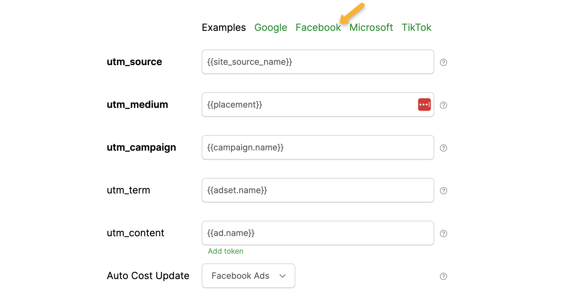 Ad network “tokens” are dynamic placeholders that can be used as UTM values, in place of a static value. These tokens are then replaced with real values by your ad network each time your ad is clicked.