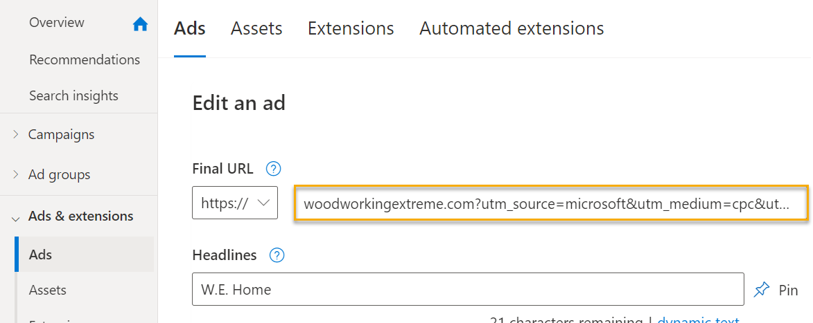 Finally, paste this modified link into the "Final URL" field for your Microsoft ad: