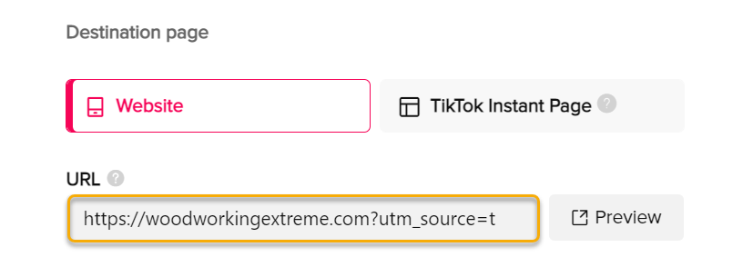 Step 2 - Use your UTM-Powered URL in your TikTok Ad