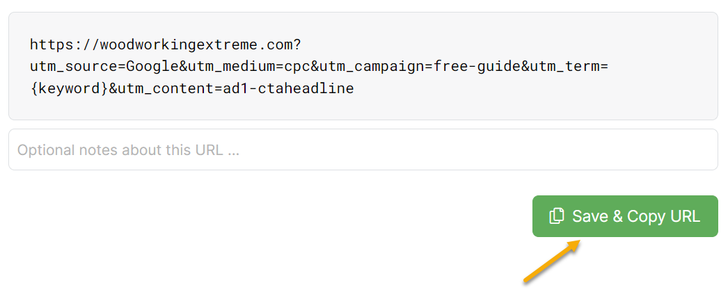 Click on the “Save & Copy URL” button to copy your UTM-powered link to your clipboard.
