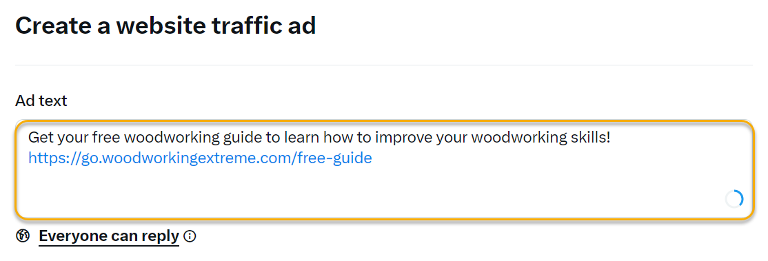 Finally, paste your UTM-powered URL or your “pretty” short link URL into your X ad.