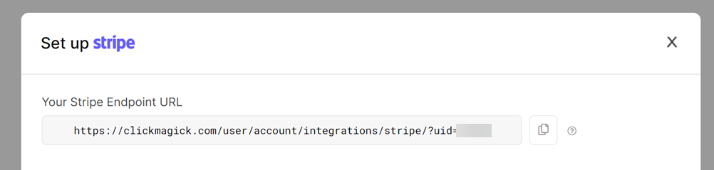 Navigate to your ClickMagick Integrations page, click the “Set up Stripe” button, and copy your Stripe Endpoint URL at the top of the screen, which you’ll need in the next step.