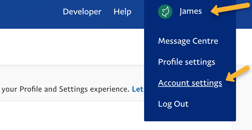 Login to your PayPal account, go to “Account Settings” in the top right hand corner.