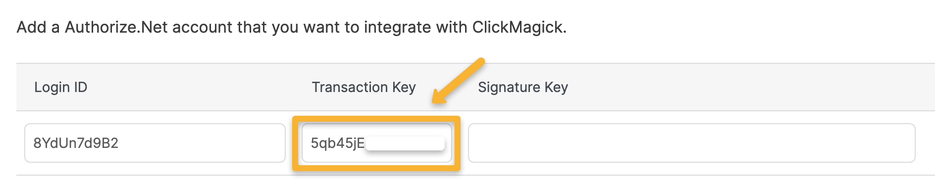 Step 3 - Add your Login ID, Transaction Key and Signature Key to ClickMagick