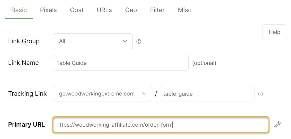 For the Primary URL, enter the URL you want the visitor to end up at. In the example above, that would be the URL of the order form for this particular product.