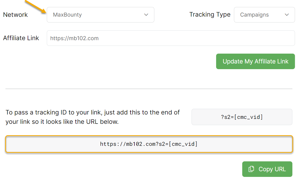 Select your network from the menu, paste in your affiliate link, and click the “Update My Affiliate Link” button.