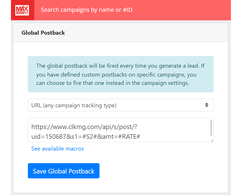 But with some other networks, you may need to add your Postback URL individually to each offer you promote. It just depends on the network.