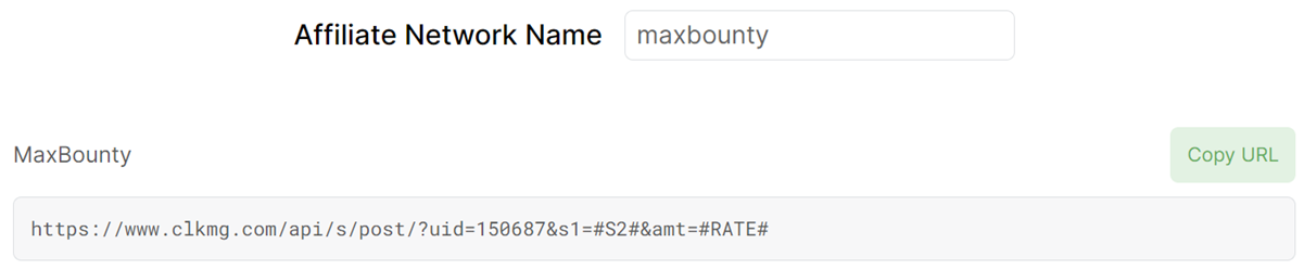 Just type in the name of the network you’re using, and your custom Postback URL will be displayed ...