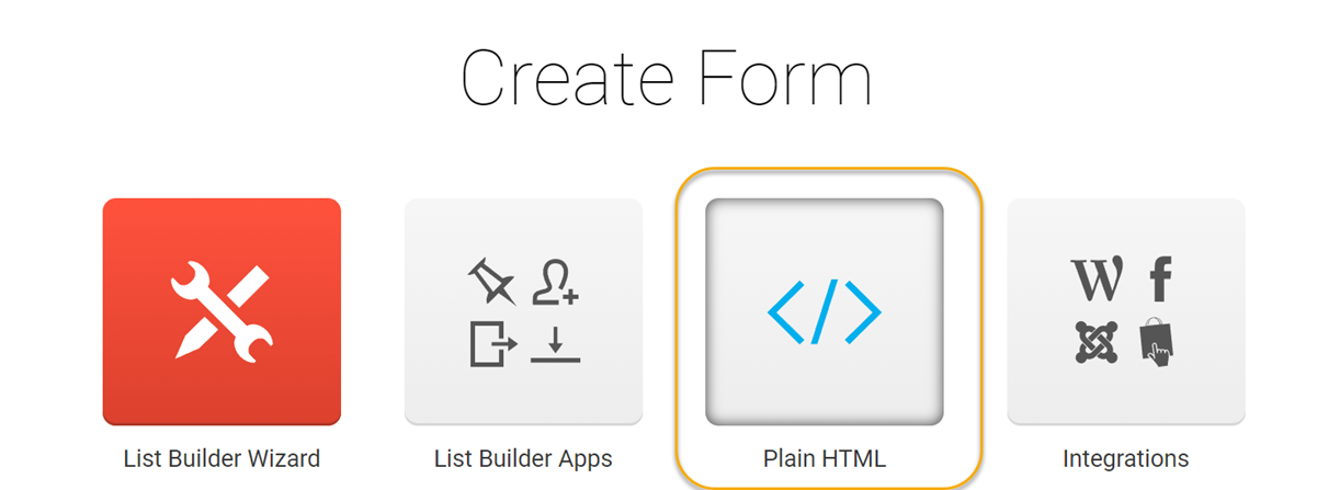 3. Once the form creation page pops up, choose “Plain HTML” as the type of form.