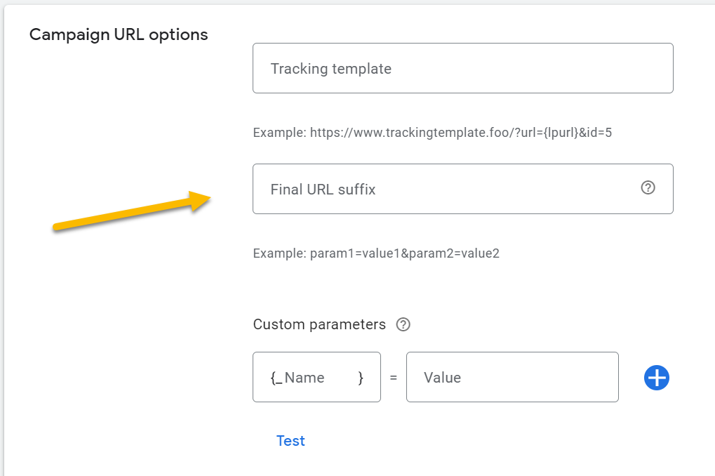 If you have so many ads that updating the URLs for each ad is simply not practical, you’ll want to use a Tracking Template that is applied at the Campaign level in Google Ads.
