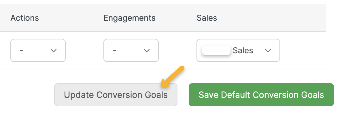 The Default Conversion Goals allow you to specify a single Conversion Goal for each of Actions, Engagements, and Sales with a single Project.