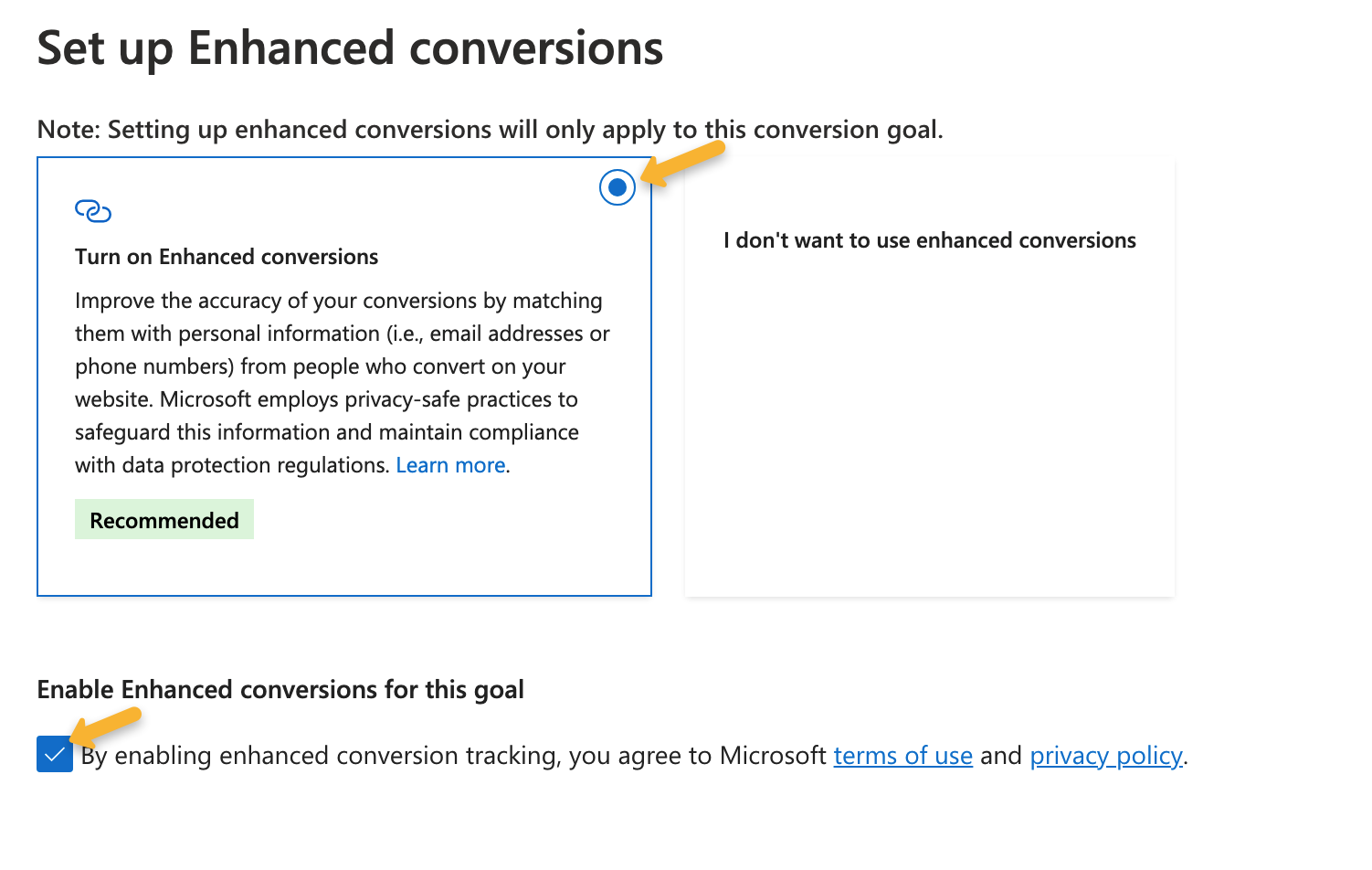 Once you’ve done that, just enable Enhanced Conversions in Microsoft Ads by following these steps: