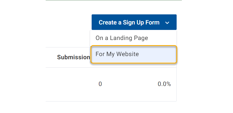 2. Click on “Create a Sign Up Form” and then choose “For My Website”
