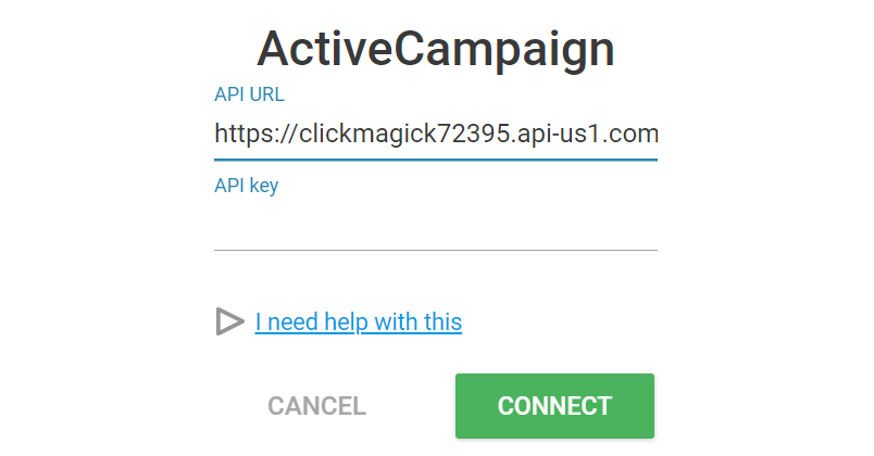 Or you will be prompted for API details: