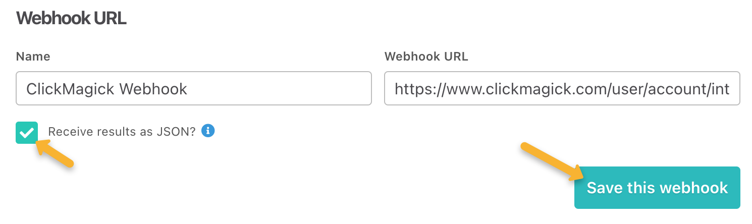 Check the “Receive results as JSON” box, then click “Save this webhook”.