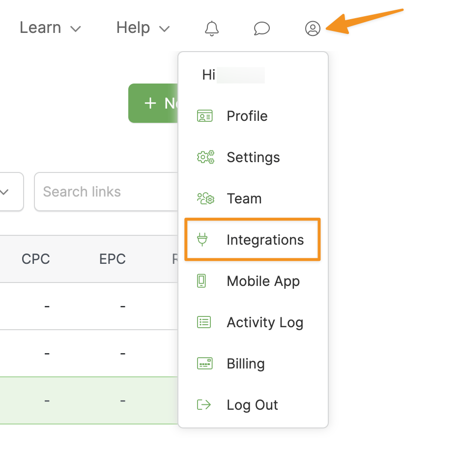 To get your API Key, you’ll want to visit the API page in the Profile Dropdown: