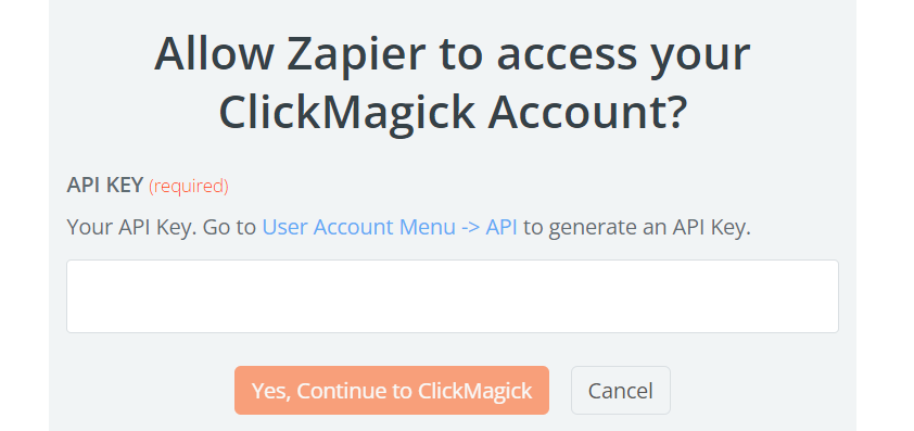 Click on “ClickMagick” and you’ll be prompted to enter your API Key.