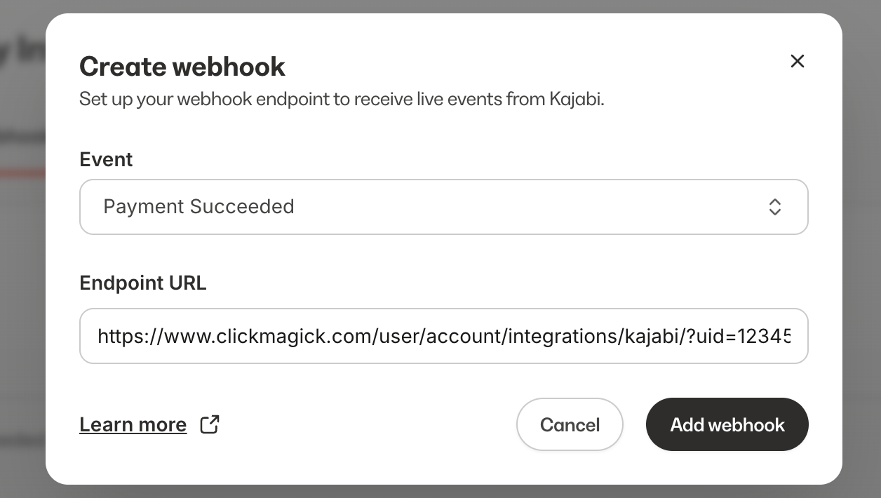 Note: We always process conversion data immediately, but please note there can be a delay between when a conversion occurs and when Kajabi sends it to ClickMagick. It’s usually just a few minutes, but we have no control over it.