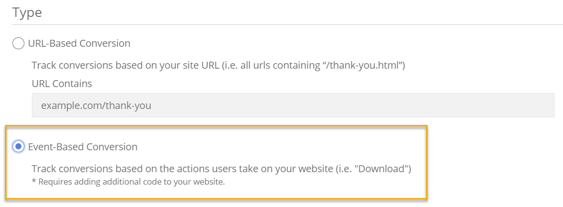 Select the following settings, and change the conversion event to match whatever event you’re sending.