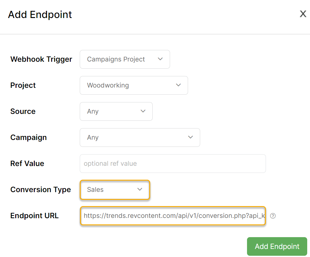 You can send your conversion data to your native ad platform by setting up a webhook. This will just takes a few steps, and will allow you to send your conversion data back to the network so that you can optimize your marketing.