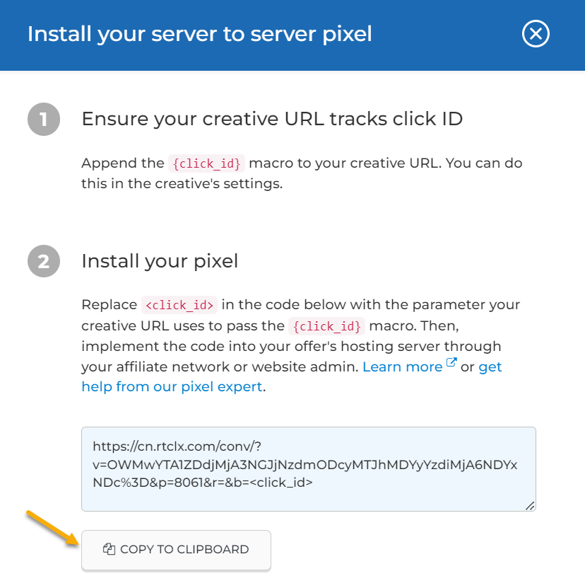 Note: In the above case, the {click_id} from RTX is going to be passed in the cmc_tid parameter.