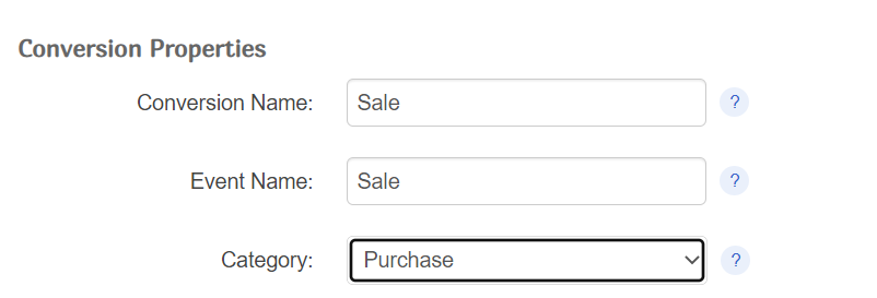 Give your conversion a name such as Action, Engagement or Sale and select the Category that best describes your conversion.