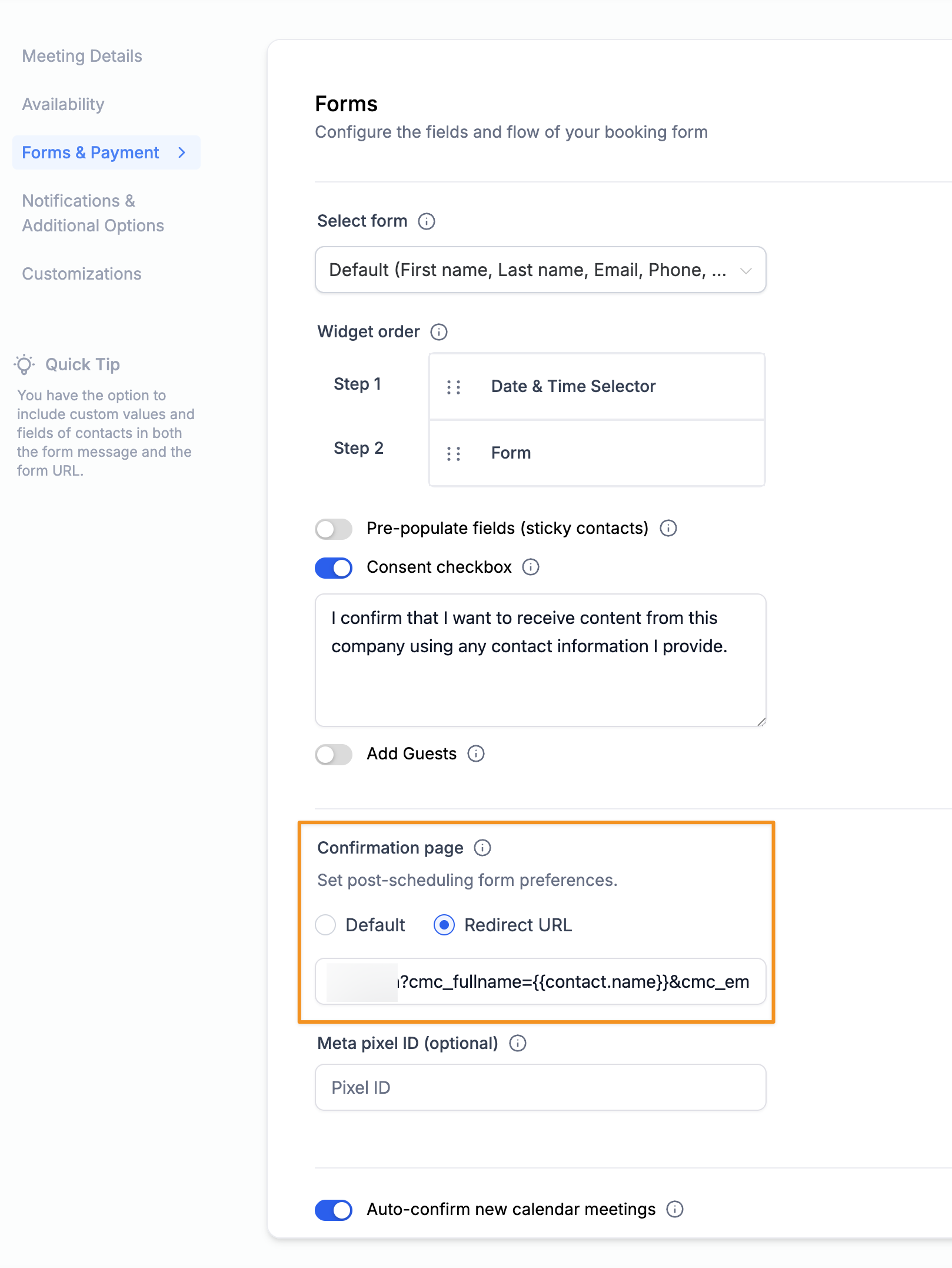 10. Use HighLevel Calendar to pass visitor information to your custom confirmation page