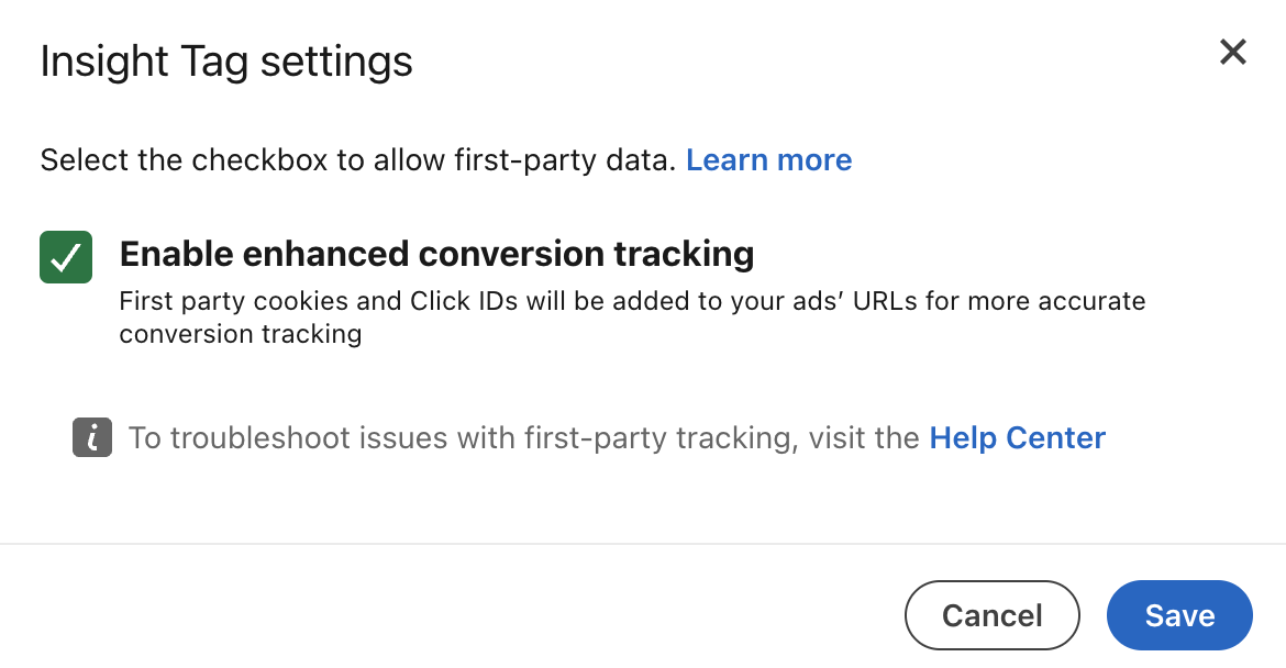 Once you’ve done that, just enable Enhanced Conversions in LinkedIn by following these steps:
