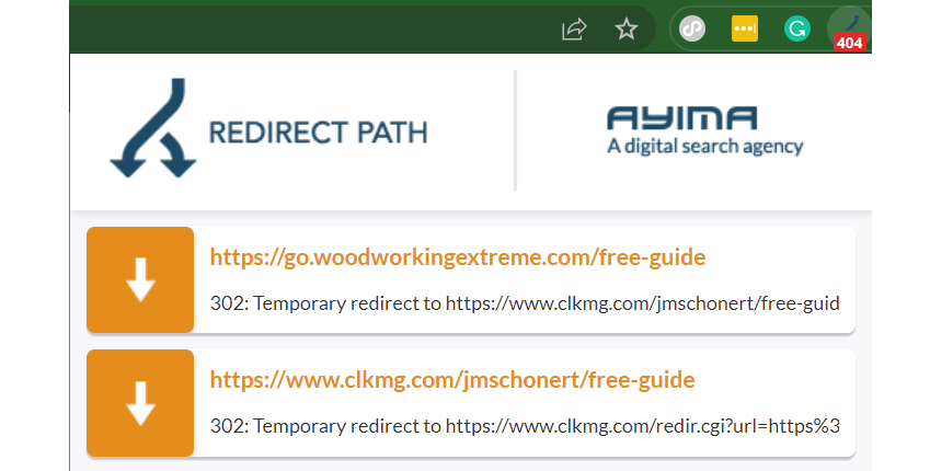 The easiest way to determine this is to use the “Redirect Path” extension for the Chrome Brower, a “must” for anyone tracking their clicks. You can get the “Redirect Path” extension by going to the Chrome Store and entering “Redirect Path”. The extension is from Ayima. Just click “Add to Chrome” to install it.