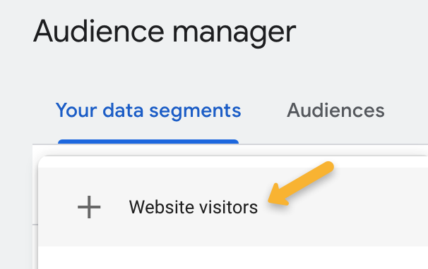 6. Once you have at least one data source listed, go to “Your data segments” on the left, then click the blue plus button to add a new remarketing list.