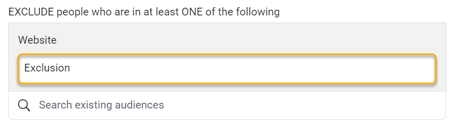 6. When creating your campaign, you’ll be brought to a page where you’re setting up the ad group. Scroll down to find the “Audience” section, and add your new custom audience to the “Exclude” box.